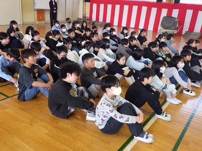体育館で終了式を行いました。