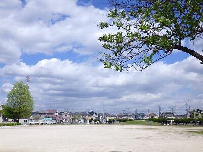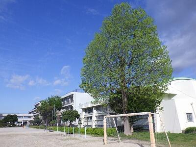 昭和48年(今から52年前)に拡張された校庭部分は、地面の色が少し違うのがわかります。