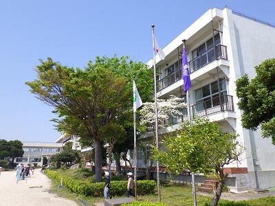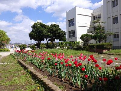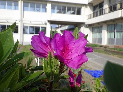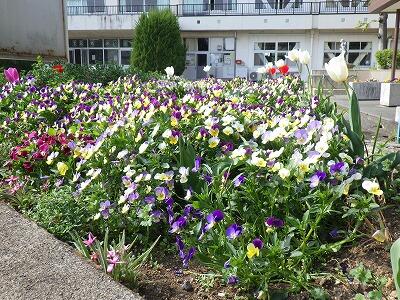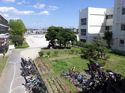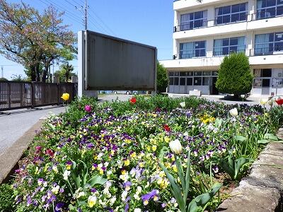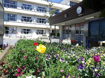 職員玄関と児童昇降口の間に小さな花壇があります。
