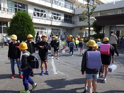 教室に戻る2年生以上の児童と下校する1年生たちです。