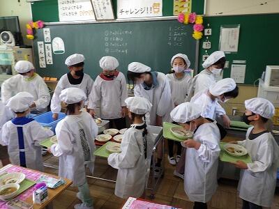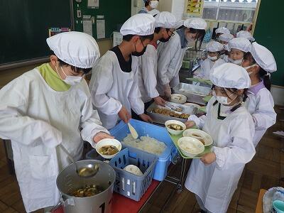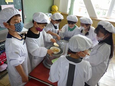 6年生が配膳のお手伝いをしてくれています。