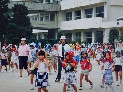 次に、校庭に避難します。