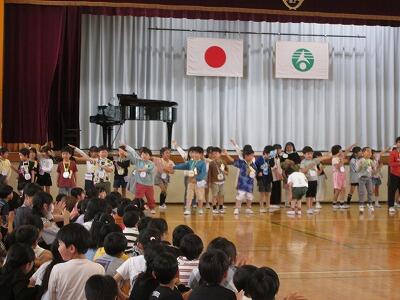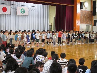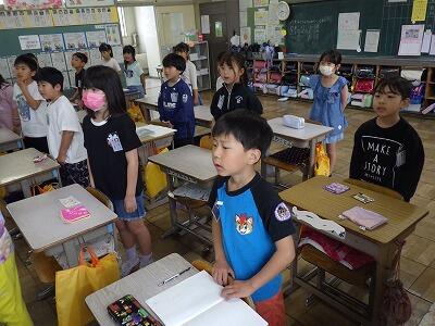 朝の会。2年生の教室から歌声が聞こえてきました。