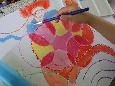 絵具と水だけで、いろいろな表現ができますね。