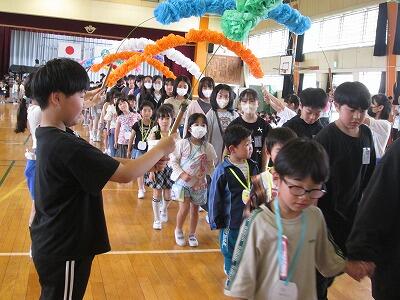 6年生に手を引かれて入場です。