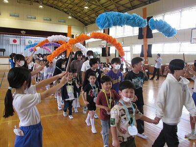 6年生のお兄さん、お姉さんといっしょに退場します。