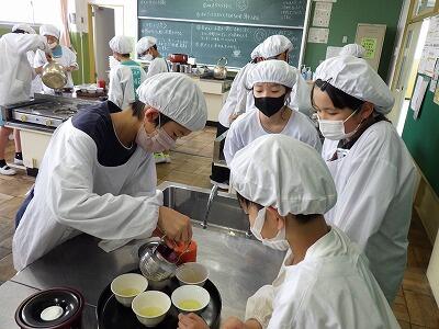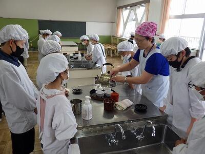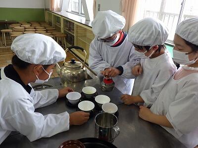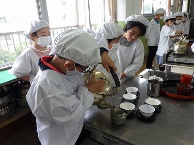 今日は初めての調理実習。お茶をいれる練習です。。
