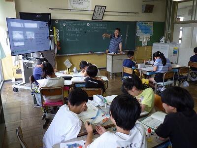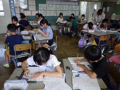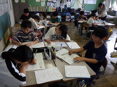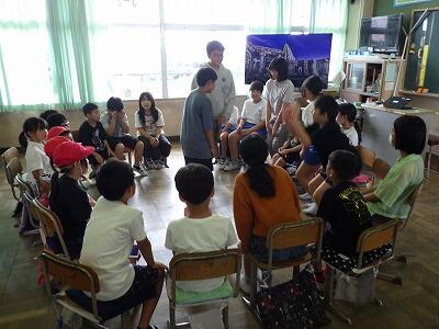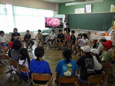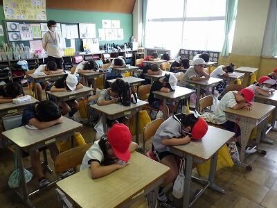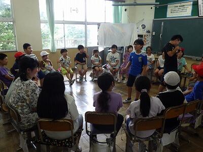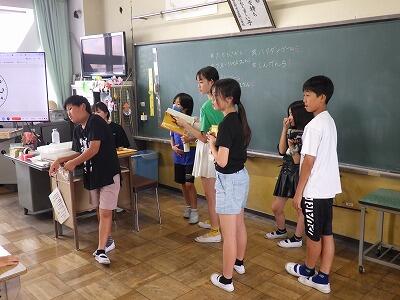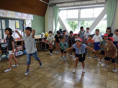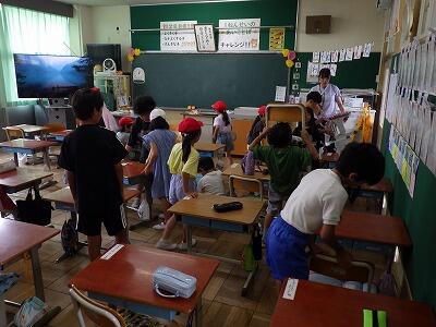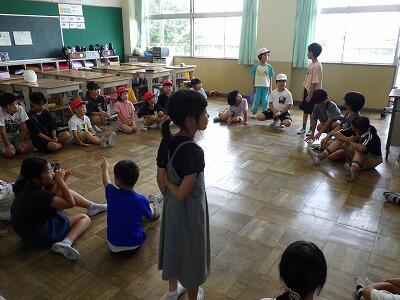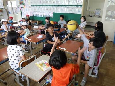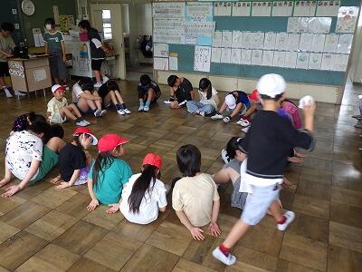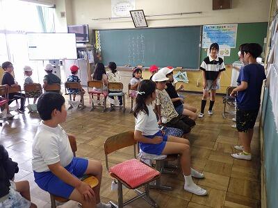 暑さのため、校庭で行う予定だったなかよし集会は教室内で行いました。
