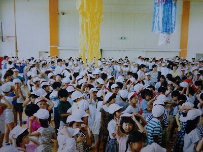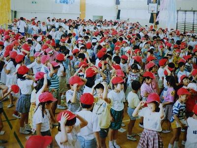 当時はプールも体育館も子どもたちが密集していました。