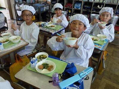 しっかり給食を食べて午後もがんばります。