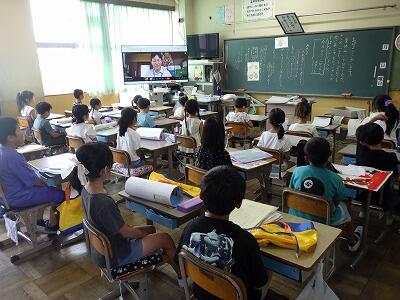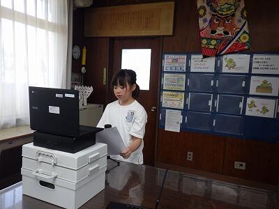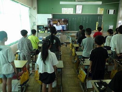 体育館で工事が始まっているため、始業式はオンラインで行いました。
