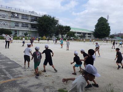 業間休み、一斉に子どもたちが校庭に飛び出してきました。