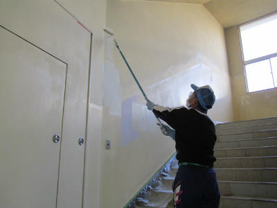 7月にPTAと協同で行った校舎のペンキ塗りも、南校舎で残ったのは、保健室前の階段だけになりました。