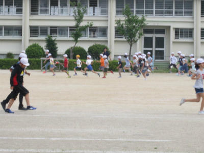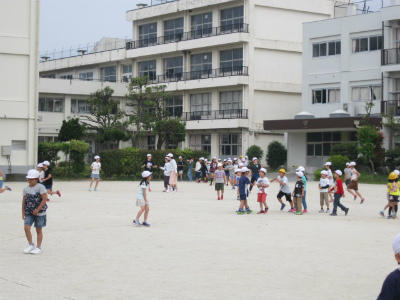 連休の狭間の朝ですが、子供たちは、元気に校庭へ。
