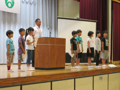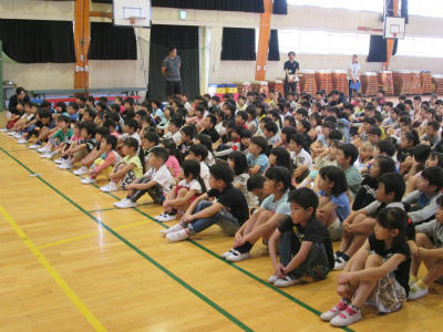 時折クイズを入れながらの話に、子供たちは、スクリーンに見入っていました。