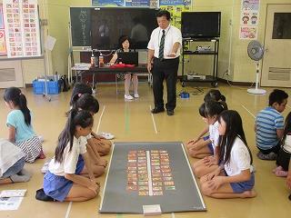 地域の方が、昔遊びを教えてくださっています。