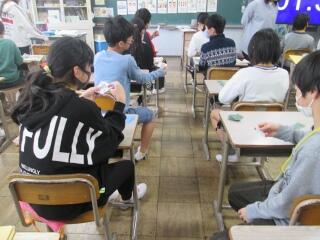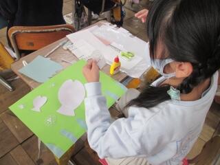 2時間目、空から小さな白い粒が、ぱらぱらと。