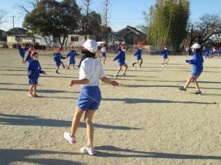 昼には、晴れた校庭で、たくさんの子が遊んでいました。