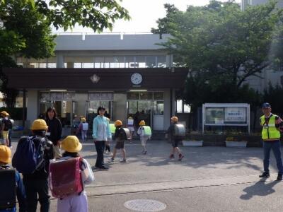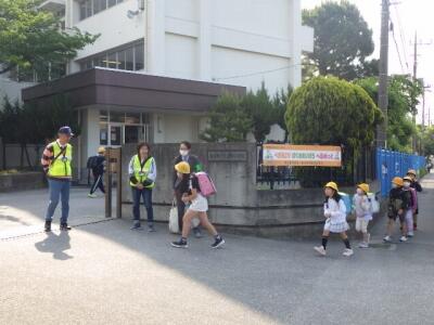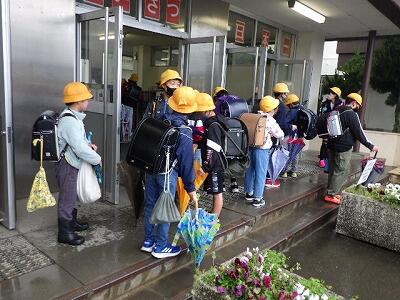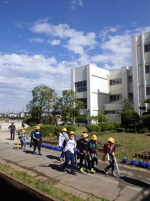 一列に並んで下校します。