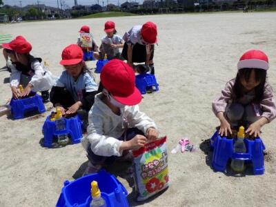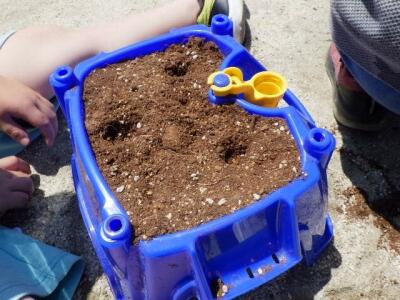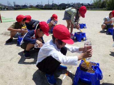 1年生がアサガオの種まきをしました。
