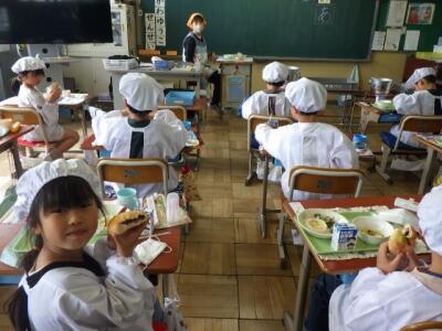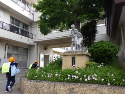 学校近くの田んぼでは、早くも田植えが終わっていました。