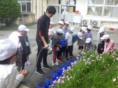 生活科でミニトマトを育てます。