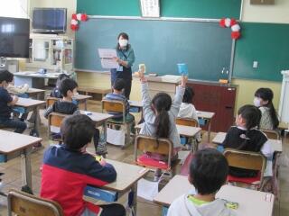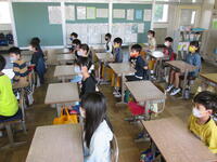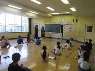 6年生、4年生が、1年生に体育のお手本を見せてくれました。