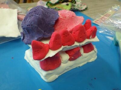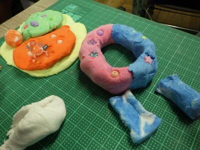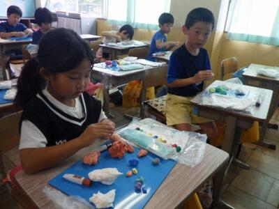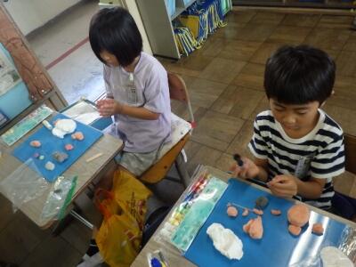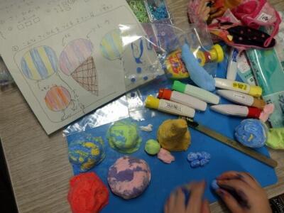 白い紙粘土に絵の具を混ぜることにより、カラーのねんどになります。