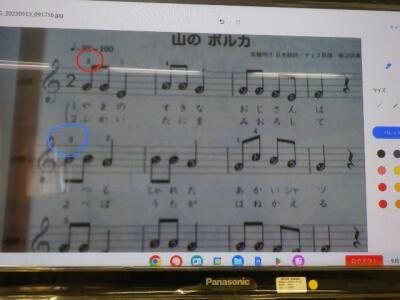 音楽の時間の最初に、運動会の歌の練習をしていました。