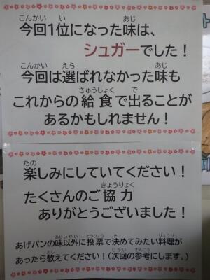 9月27日(水)の給食のあげパンは、シュガー味です。
