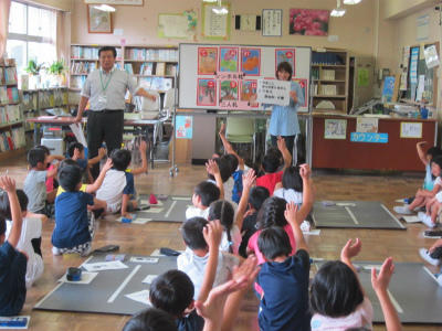 社会教育課から、3年生に、かすかべ郷土かるたの説明がありました。かるたを通して春日部市の郷土の学習について、理解を深めていきます。