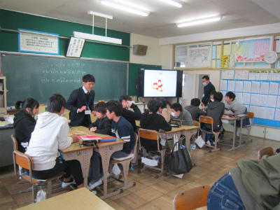 卒業を前にした6年生のために、豊野中から数学と英語の出前授業に来ていただきました。