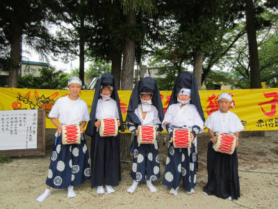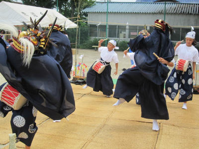 赤沼獅子舞が行われ、豊野小学校の児童も上手に演じていました。