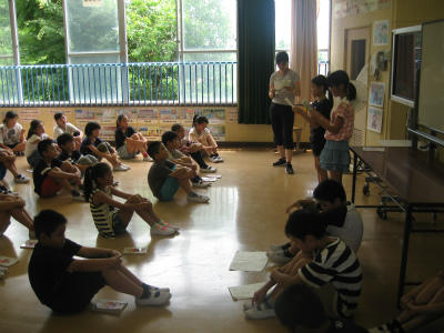 おはなし会の方による1学期最後の読み聞かせです。子供たちは、大好きな時間だけに、朝から楽しそうでした。