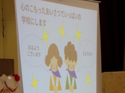 その後、今月の生活目標「気持ちのよい学校にします」について、写真を比較しながら確認しました。