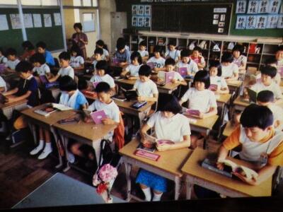 1クラスの児童数は40名弱なので当時としてはそれほど多くはないのですが、今と比べると密度が高く感じられます。