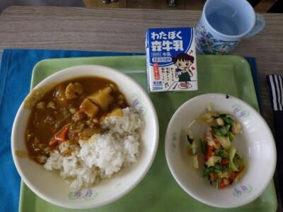 新しい教室で食べる初めてのカレーです。