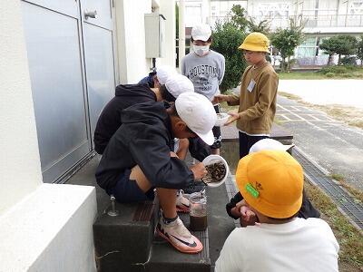 今日から5年生全員で、10匹のヒラメを育てていきます。