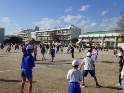 代表委員のあいさつで、「なかよしドッジボール」が始まりました。