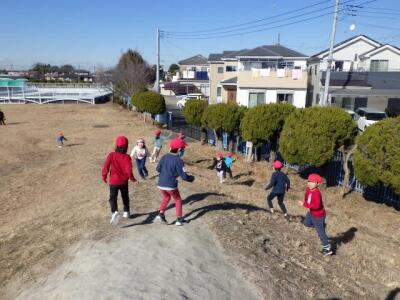ぽかぽかした陽気に誘われて、たくさんの子どもたちが校庭に出てきました。