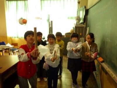 自分たちで作ったおもちゃで遊ぶ時間です。