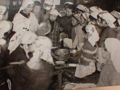 当時は三角巾やバンダナではなく、手ぬぐいを巻いていました。