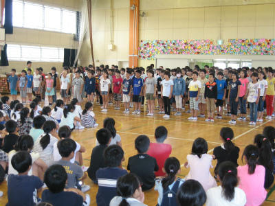 プール掃除をしてくれた5,6年生にお礼を言い、感謝の拍手をしました。