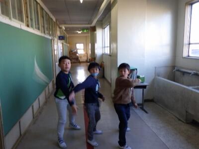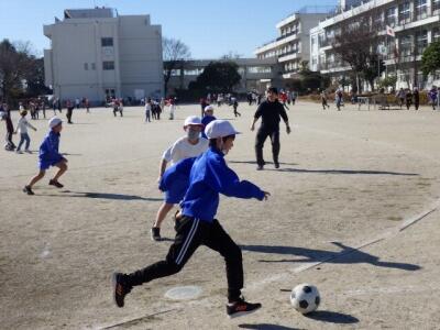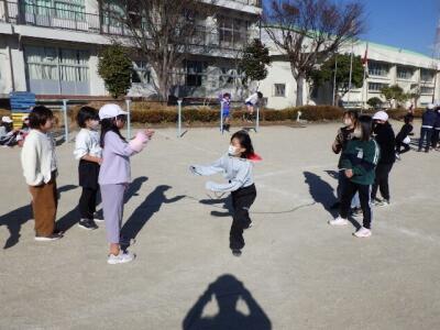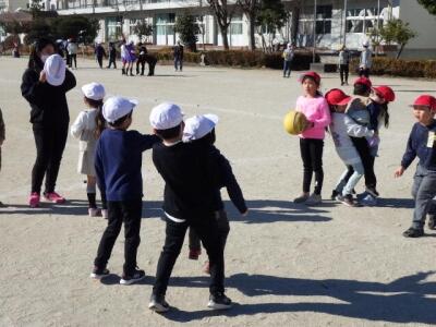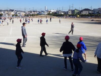 ぽかぽかした陽気に誘われて、たくさんの子どもたちが校庭に出てきました。