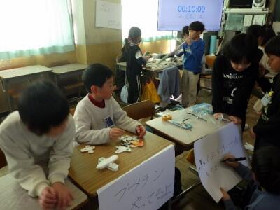 自分たちで作ったおもちゃで遊ぶ時間です。