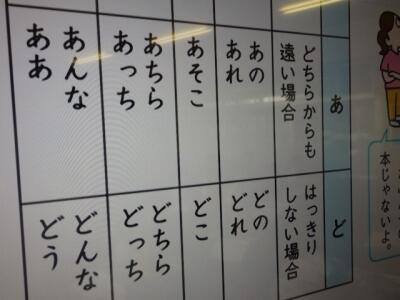 「この」「その」「あの」「どの」など物事の場所を指し示したり、たずねたりするときに使う言葉です。