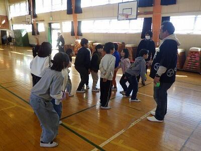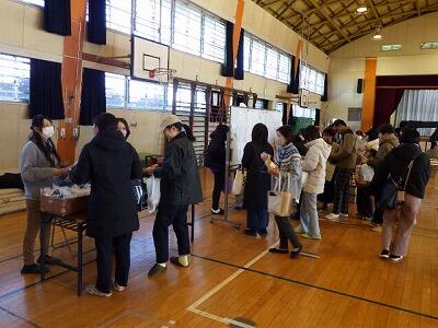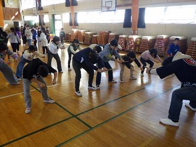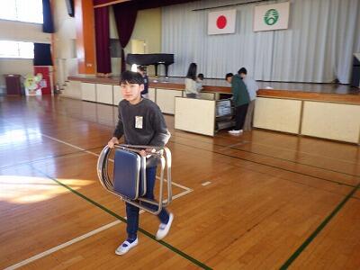 体育館では6年生が入学説明会の会場づくりを手伝っていました。