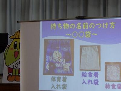 1年生の学校生活や健康・安全、登下校、PTA活動、入学式のことなどを確認しました。