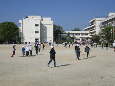 校庭は、マラソンや遊具、鉄棒などで子供たちは体を動かします。