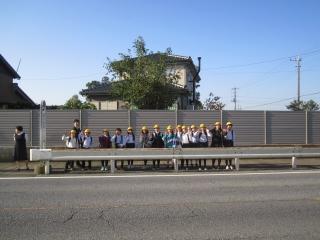 豊野中に到着した豊野小の代表児童7名